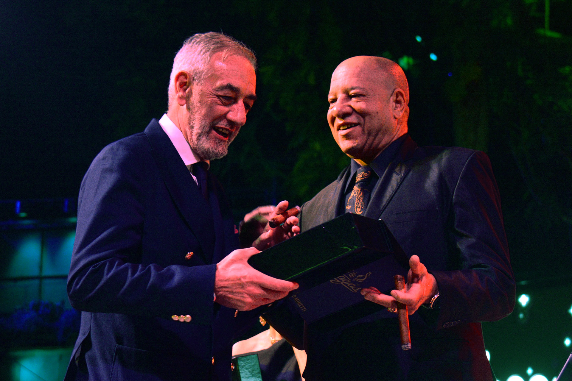 Como cierre de la noche de gala tuvo lugar la tradicional subasta de dos humidores creados por el proyecto Arte en Maderas que dirige el artista José Luis Milán. Las piezas son únicas, hechas completamente a mano con bubinga, ébano y cedro y con una capacidad para conservar 100 tabacos. Los fondos de esta recaudación se destinan al sistema de salud cubano.